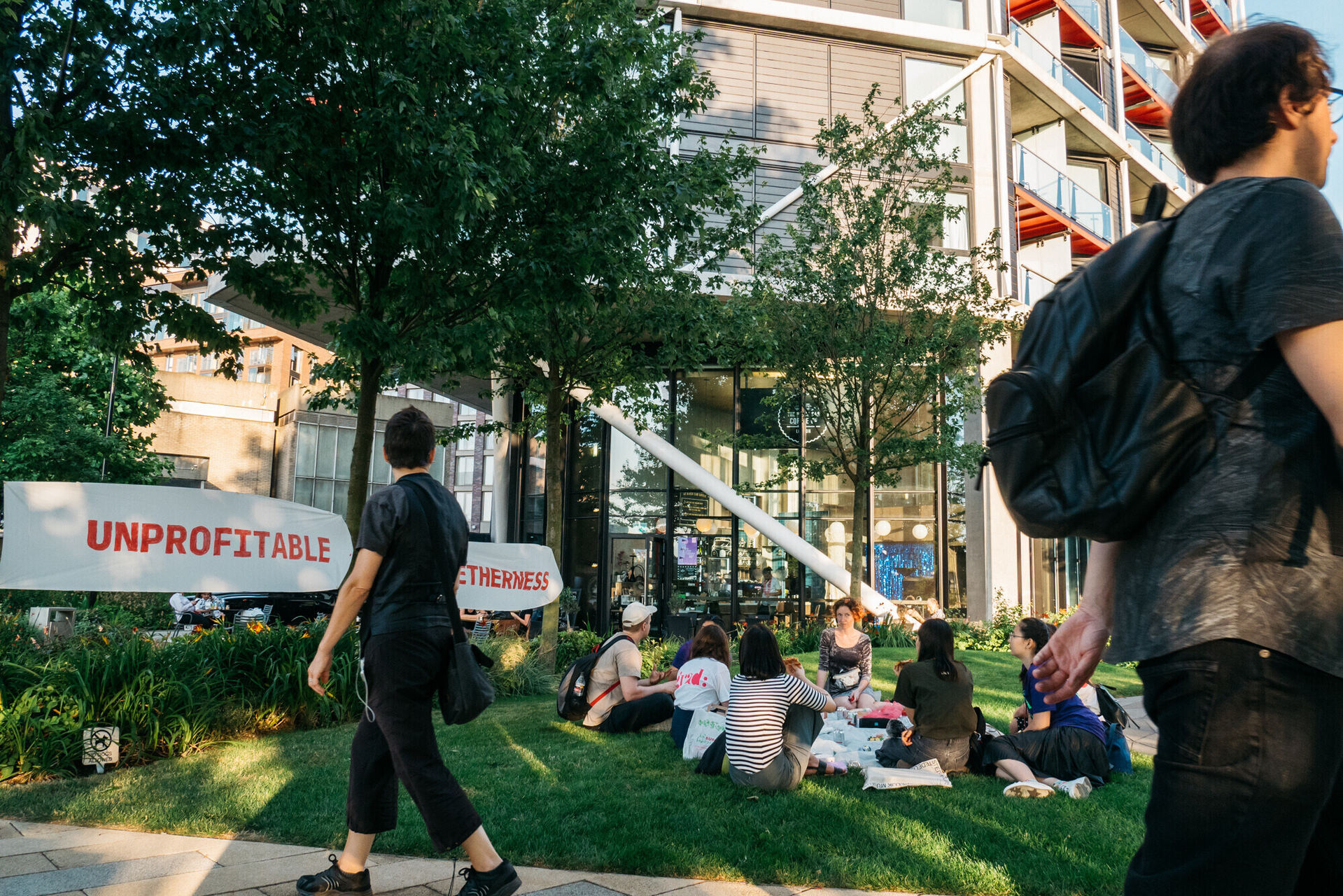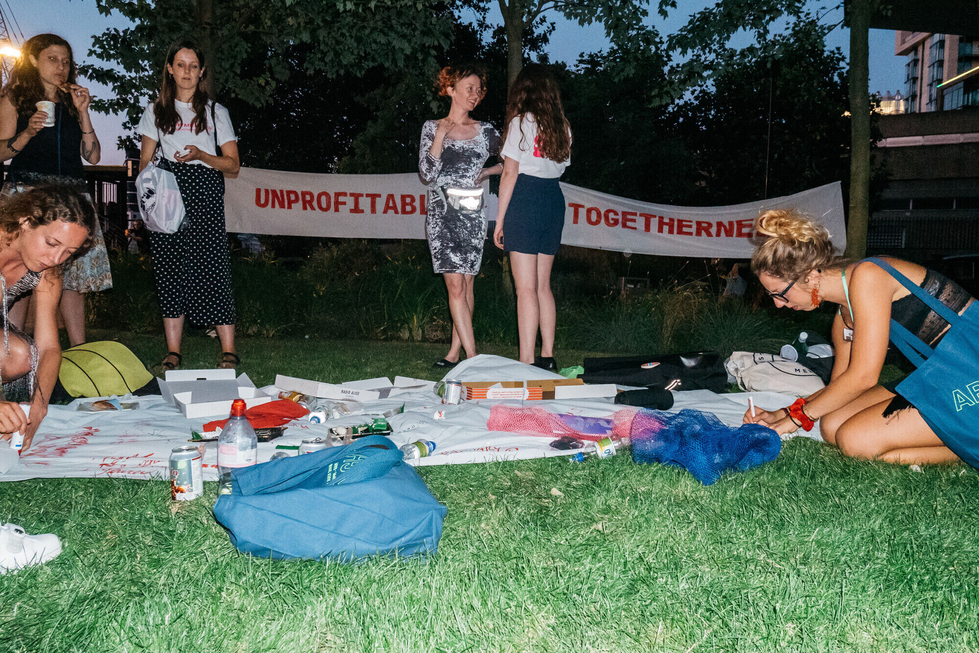 Аутсорсеры, работники платформ-агрегаторов, фрилансеры и все, кто продает свои жизненные часы были приглашены присоединиться к Автоматической Рекреационной Зоне, временной комнате отдыха от ежедневной рутины. Гости были приглашены найти время на перерыв в их безумном рабочем графике и немного побыть на пикнике. Как и на всяких вечеринках, которые проходят в рабочих клубах, мы обсуждали условия труда и делились опытом и мыслями как достичь менее работо-центрированного мира. Но нам необходимо было это делать быстро – наша Автоматическая Рекреационная Зона была действительно временной и работала в ускоренном режиме: работникам платформ не хватало времени там задержаться надолго из-за особенностей экономического режима, в который мы все вовлечены.